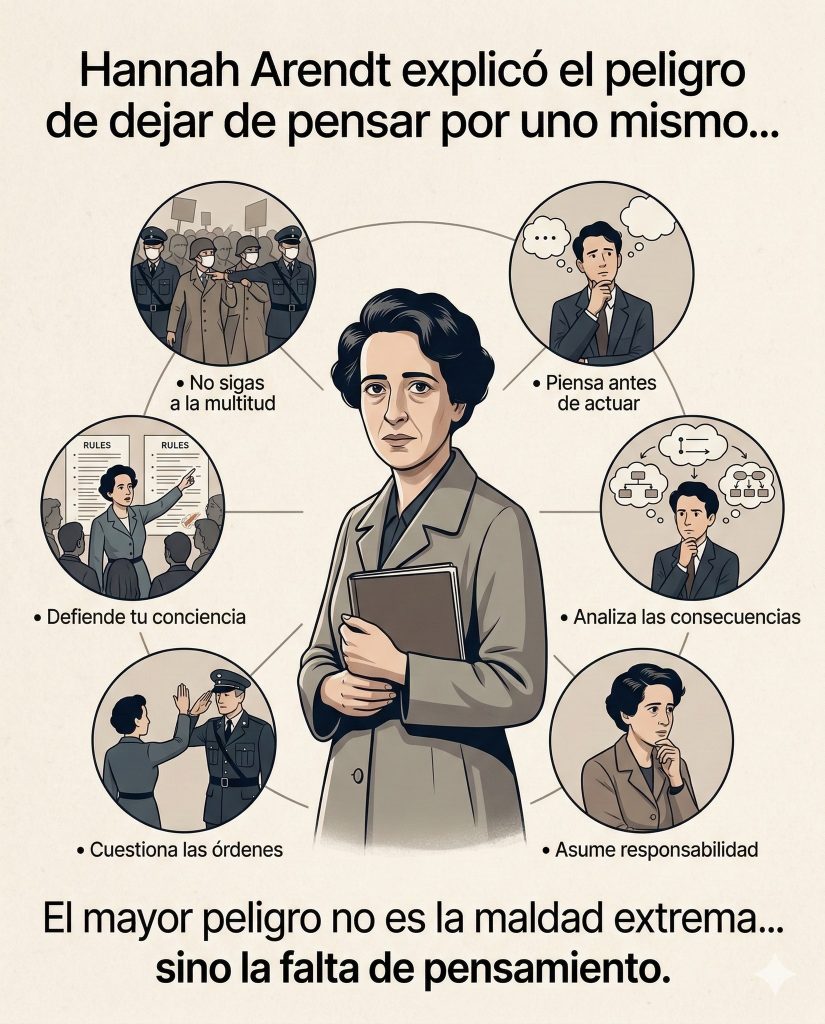 En 1961, una mujer delgada, de voz suave y mirada implacable se sentó en el tribunal de Jerusalén para presenciar el juicio de Adolf Eichmann, el burócrata que había organizado la deportación de millones de judíos durante el Holocausto. Fumaba sin pausa y tomaba notas sin pestañear. No vio un monstruo, sino un hombre gris, un funcionario obediente que nunca pensó por sí mismo. “El mal”, escribiría después, “no necesita profundidad; basta con la ausencia de pensamiento”. Aquella observación, devastadora en su sencillez, la consagró y la condenó: había nacido la idea de la banalidad del mal.