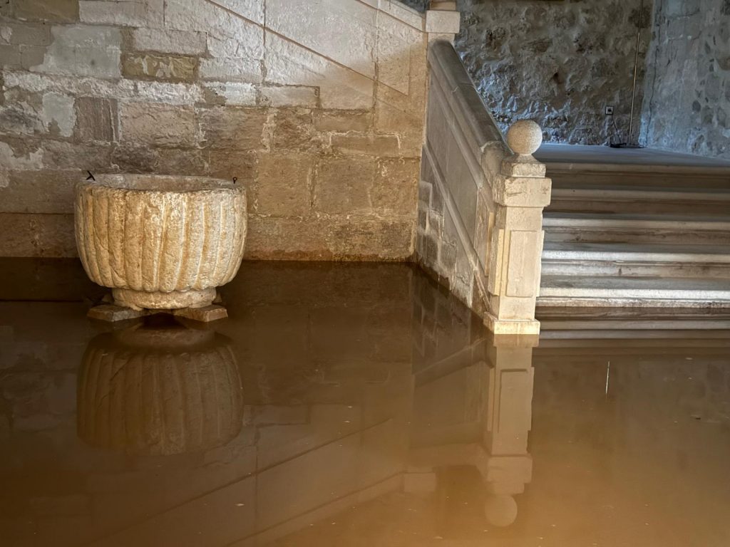 El agua ha penetrado en la planta baja, donde ha alcanzado una altura de unos treinta centímetros. Los bomberos la han estado achicando durante el día de hoy. No se han producido grandes daños, si bien se cerrará algunas semanas a las visitas.