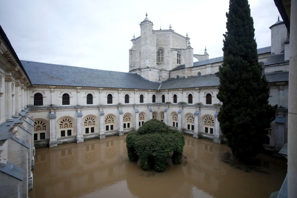 La crecida del río Duero ha inundado la planta baja del Monasterio de la Vid. Penetró en el interior del monumento ayer por la noche y hoy por la mañana ha llegado a alcanzar los treinta centímetros de altura.