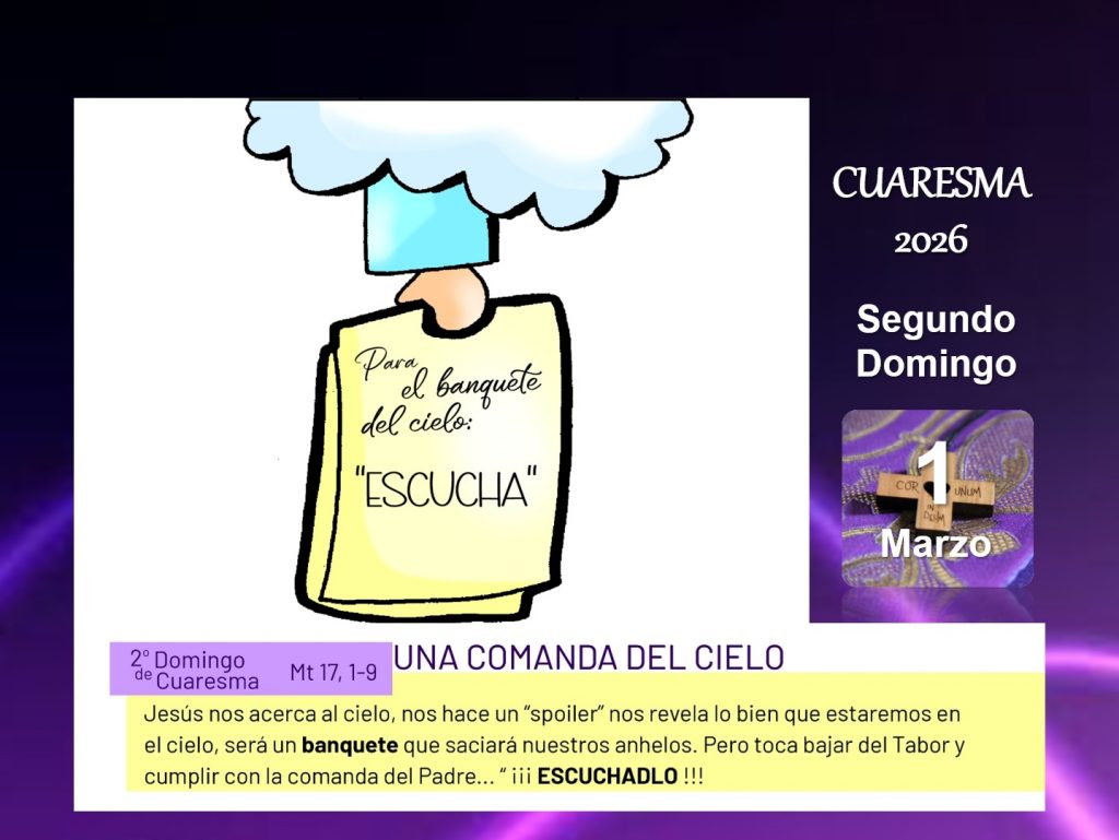 Mt. 17,1-9. El seguimiento de Jesús no es un camino llano, al contrario, suele tener mucho desnivel. A veces, sabemos que subir con él a lo alto del monte va a estar lleno de dificultades, o caemos en la tentación de creer que desde abajo también podemos seguirle, sin complicarnos mucho la vida. Otras, en momentos de euforia, desde la cima, creemos que ya hemos conseguido el objetivo y que está todo hecho. Cuando, en realidad, es solo un momento de claridad, de aire, de empuje… que nos da fuerza para volver a lo cotidiano, a lo poco glamuroso, a la tarea ingrata pero necesaria. Incomodidad, temor, inseguridad… son sentimientos que todo discípulo experimenta. También Jesús los experimentó, pero sabemos que son parte del camino a un destino maravilloso: el Reino de Dios en la tierra, un mundo más justo, fraterno y sororo. Por eso hoy te invitamos a reflexionar y orar a partir de estas preguntas: ¿Qué comodidades o miedos te están frenando en este momento del camino? ¿Qué pequeños pasos puedes dar hoy para superarlos?