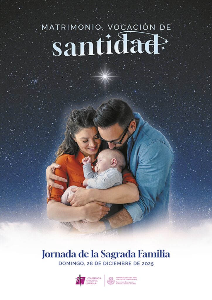 La Conferencia Episcopal Española invita a celebrar la Jornada de la Sagrada Familia que la Iglesia celebra el próximo 28 de diciembre bajo el lema ‘Matrimonio, vocación de santidad‘ redescubriendo el matrimonio y la familia como una auténtica llamada de Dios, en el contexto del cierre del Año Jubilar y a la luz del Congreso para las Vocaciones celebrado el pasado mes de febrero.