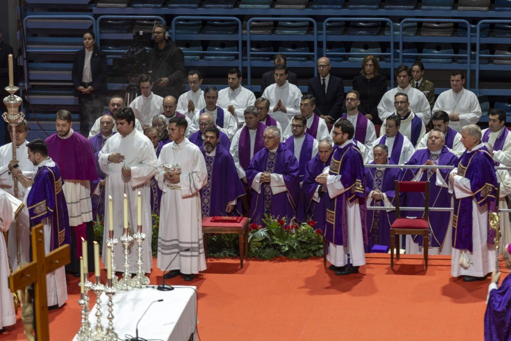 El Palacio de Deportes Carolina Marín ha sido un gran templo en el que miles de personas han vivido desde la fe y la oración el funeral por las víctimas del accidente ferroviario de Adamuz.
