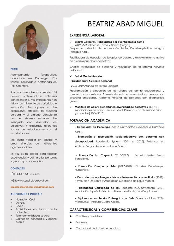 Currículum Vitae de Beatriz – Camino Vital