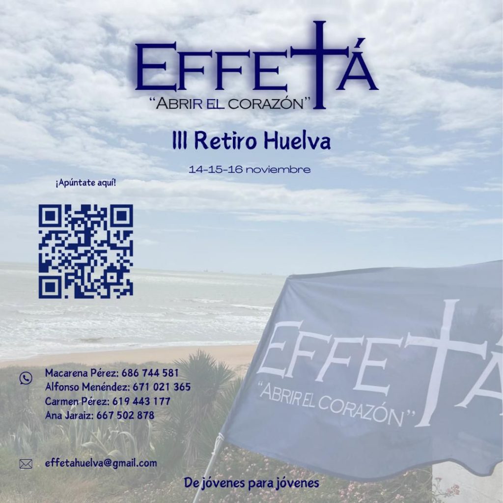 Para obtener más información para el retiro Effetá pueden contactar a través del siguiente correo electrónico:  effetahuelva@gmail.com o a través del número de teléfono 686 74 45 81.