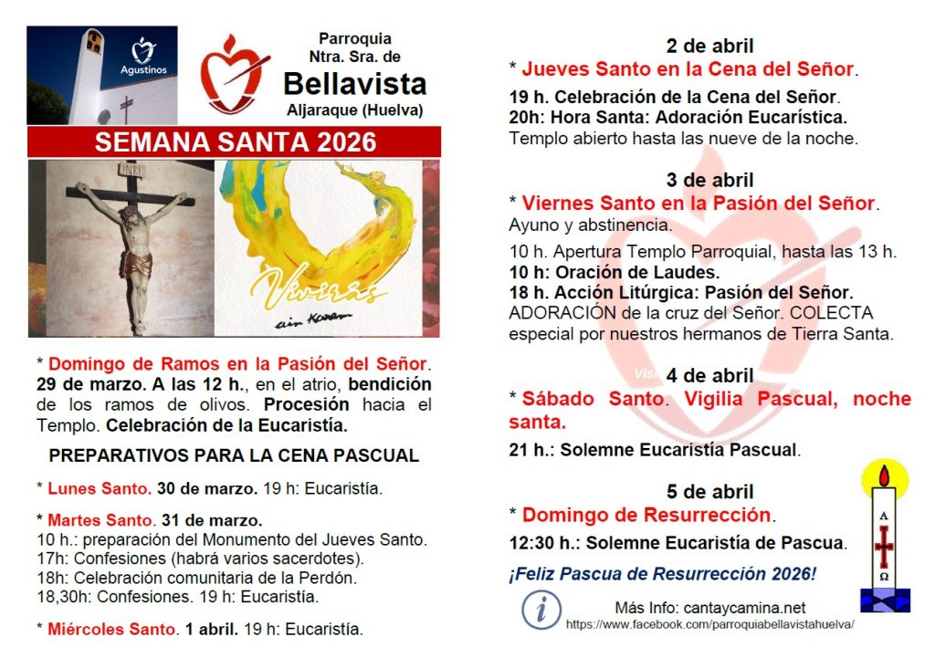 Portada: Semana Santa y Pascua 2026 en la Parroquia de Nuestra Señora de Bellavista, Aljaraque (Huelva).