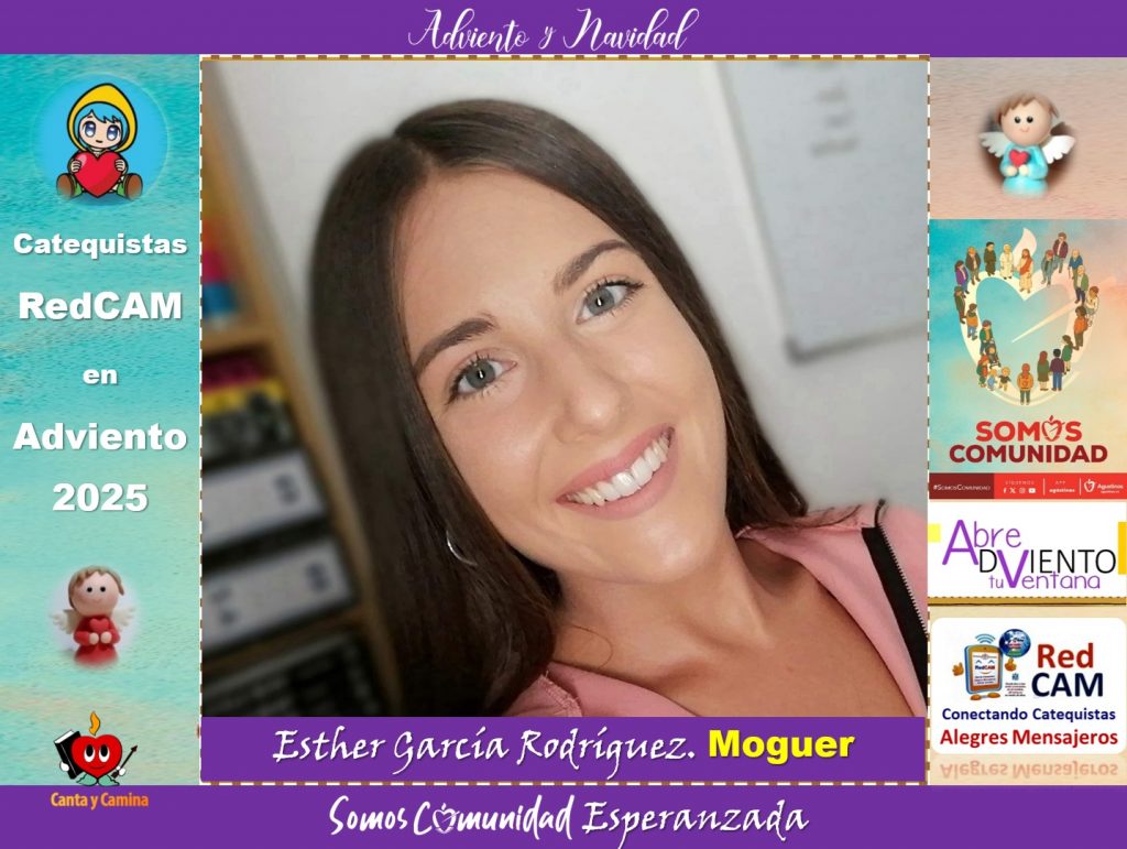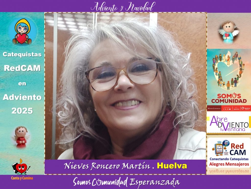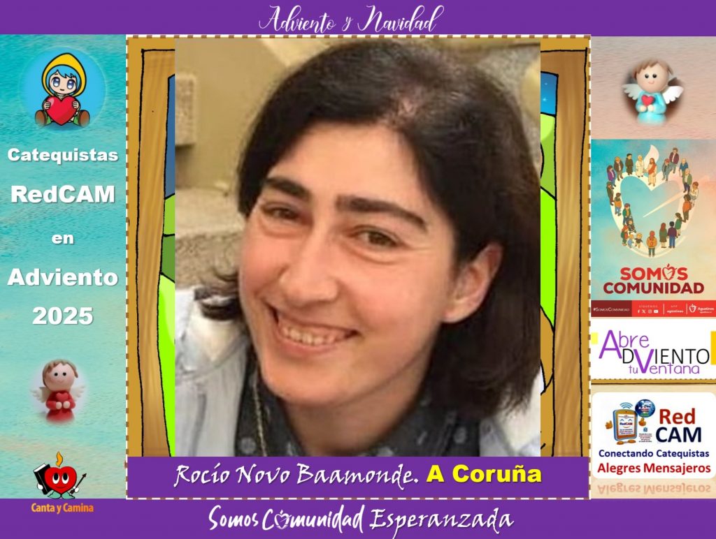 «Soy Rocío, Hija de la Natividad de María. Catequista en la parroquia de San José (A Coruña). Para mí el Adviento es un tiempo precioso en el que intento transmitir a los niños y jóvenes que Jesús quiere nacer en su vida y como nos dice el prefacio de la semana tercera de Adviento: «el mismo Señor que se nos mostrará entonces lleno de gloria viene AHORA a nuestro encuentro en cada hombre y en cada acontecimiento, para que lo recibamos en la fe y por el amor demos testimonio de la espera de su Reino». Esta es mi oración, saber reconocer Su venida y que pueda nacer en todos los corazones.»
